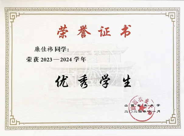 自进入山西农业大学以来,我始终以“勤学、修德、明辨、笃实”为人生准则,锚定“强农有我、振兴有我”的青春目标,在思想、学业、科研、服务奉献与生活自律中不断突破自我。经过三年多的成长,我在各方面均取得明显进步。