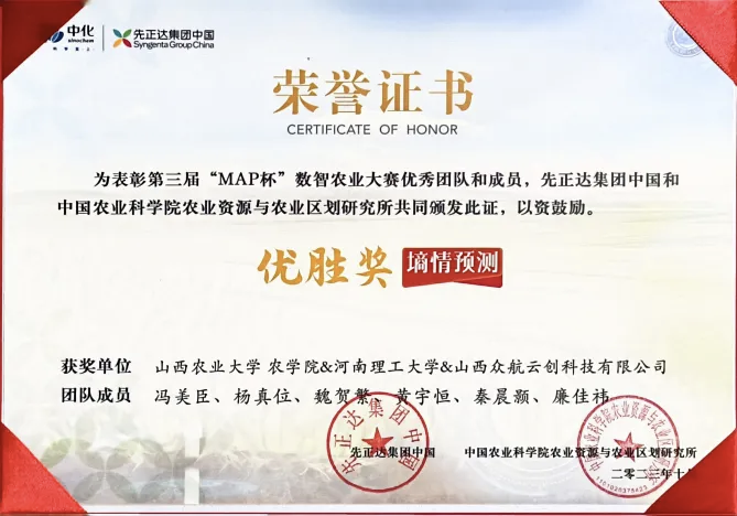 此外,我积极参与学科竞赛,与团队围绕“基于SARIMAX-SF组合模型的作物耗水量预测”展开研究,获得第三届“MAP杯”数智农业大赛优胜奖。