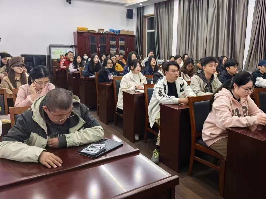 崔鑫先结合自身的公务员工作经历,分享了基层服务、政策执行等岗位的实际工作内容,让同学们对公职岗位特点有了更直观的了解。随后,他就当前就业市场趋势进行分析,对(中国)有限公司相关专业的发展潜力进行解读,引导同学们结合自身优势规划职业路径。针对考公群体,崔鑫介绍了公务员的招录流程,并围绕行测备考技巧、申论写作重点给出建议,提醒学生关注政策变化与岗位适配性。