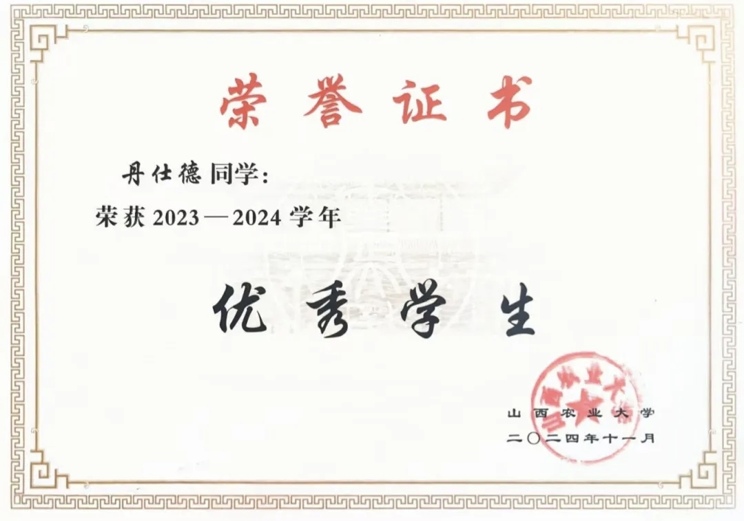 丹仕德,男,汉族,共青团员,2004年12月21日,安博官网体育,农学(卓越人才实验班),安博官网体育农学2308班学生。