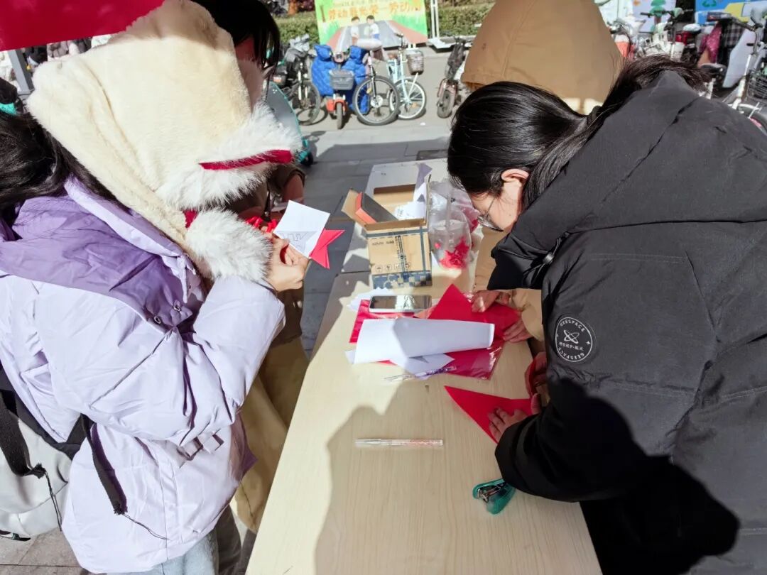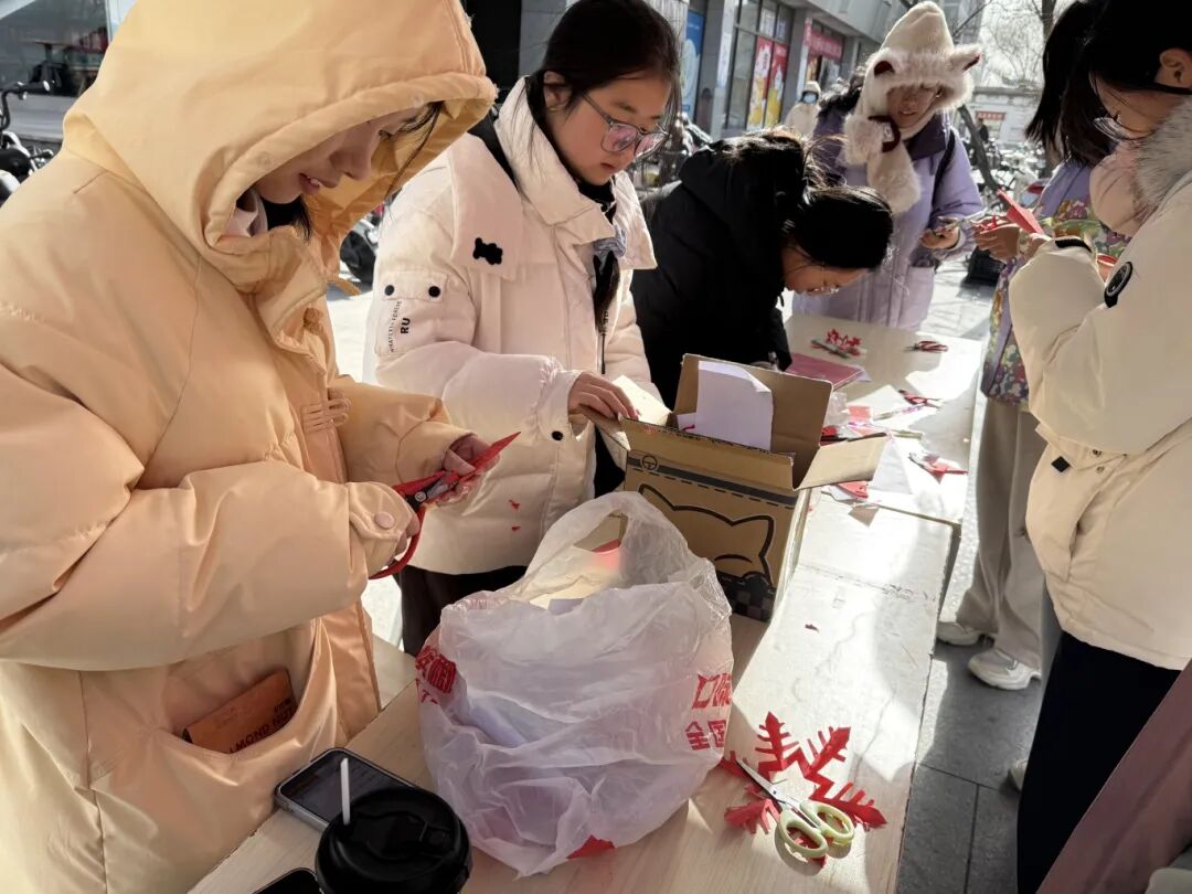 为传递冬日文化韵味,传承非遗剪纸技艺,11月27日,(中国)有限公司剪韵艺社在谷园门前举办“冬韵纸艺,剪绘时光”活动,吸引了众多同学参加。