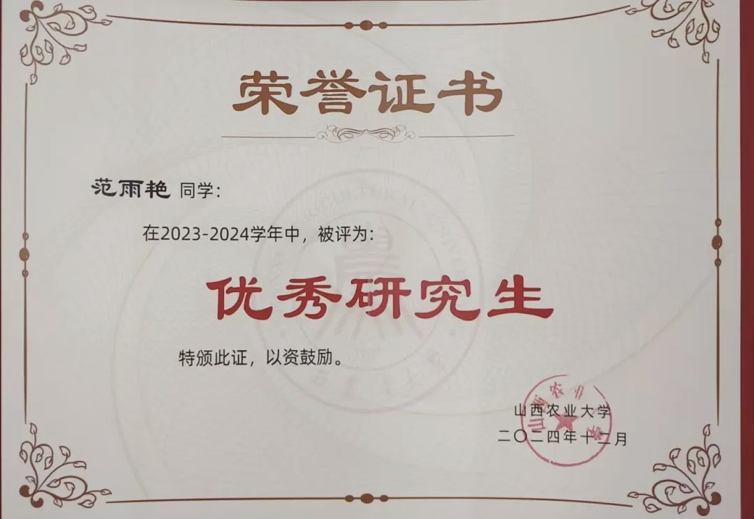 以第一作者发表学术论文SCI二区论文1篇。获2023-2024学年“优秀研究生”荣誉称号,获2024-2025学年一等奖学金。主持 2024 年山西省研究生实践创新项目“滴灌冬小麦超高产栽培技术下粒重和产量对强化叶面肥喷施措施的响应”(2024SJ123)。
