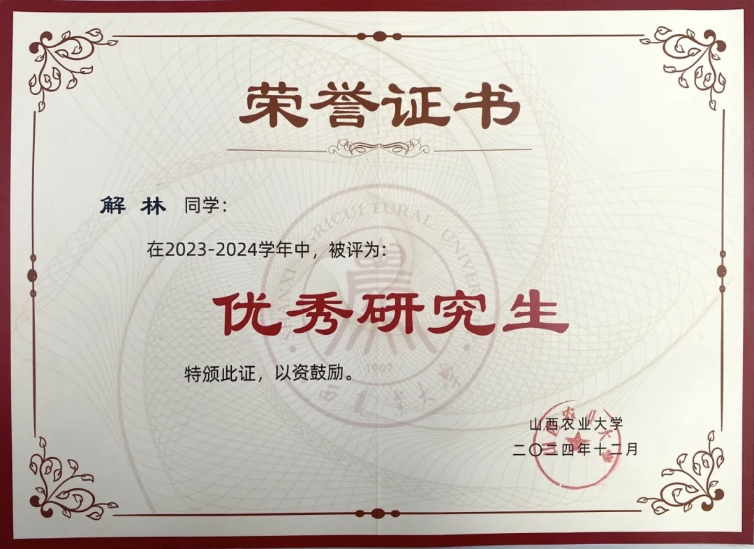 以第一作者发表SCI二区TOP论文1篇。主持山西省研究生科研创新项目1项,获2023-2024学年“优秀研究生”荣誉称号,获2024-2025学年二等奖学金,获2024-2025学年硕士研究生国家奖学金。参与山西省“特”“优”项目1项,山西省科技重大专项计划揭榜挂帅项目子课题项目1项。