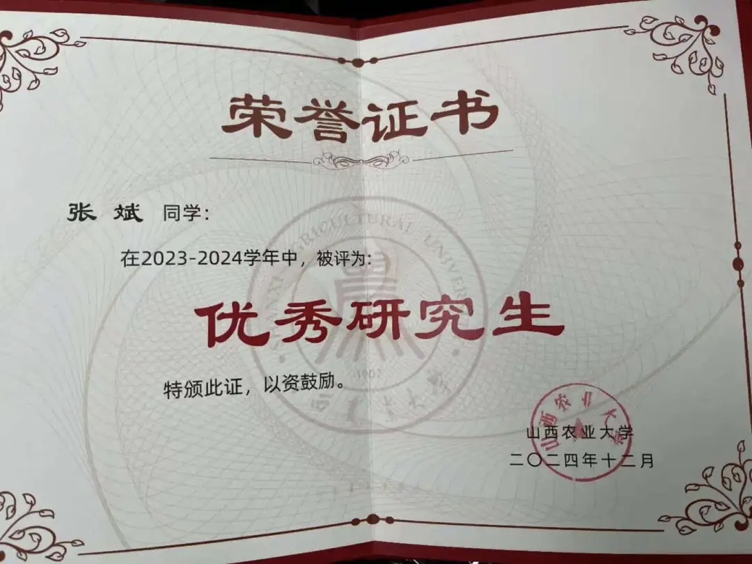 以第一作者身份发表学术论文5篇,包括SCI期刊论文2篇、北大核心期刊论文3篇。主持2021年与2024年山西省研究生教育创新项目,参与多项国家及省部级科研课题,并获授权专利2项。曾于2022年(硕士阶段,导师张美俊教授)与2025年(博士阶段,导师张福锁院士与张美俊教授)两度荣获“国家奖学金”;硕士学位论文于2024年被评为“山西省优秀硕士学位论文”;获得2022年一等学业奖学金,并获评2022年及2024年“优秀研究生”。此外,于2021年被评为“社会活动积极分子”。