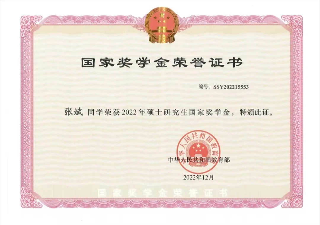 非常荣幸能够获得2024-2025年度博士研究生国家奖学金。这份殊荣,不仅是对我过去一段时间科研工作的肯定,更是一份沉甸甸的激励与期许。