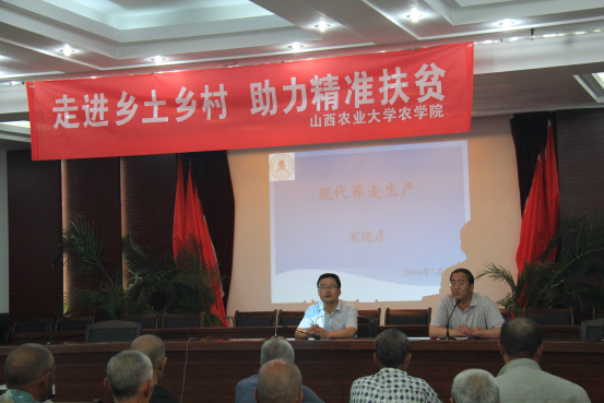 7月21日,实践队一早出发,迎着朝阳奔赴牛川,开展科技支农宣讲活动。牛川村作为和顺县荞麦主产地,学院特别邀请到宋晓彦教授为近百名荞麦种植户开展“现代荞麦生产”专题讲座。在讲授过程中,宋老师从荞麦的类型讲到近年来荞麦市场需求以及荞麦生产存在的问题,并向农户们介绍了荞麦生产的新理念。其中重点讲解了荞麦优质高产的栽培技术——通过选茬整地、合理施肥、种子处理、合理密植与田间管理五个方面为农户们提供了切实可行的种植技术。