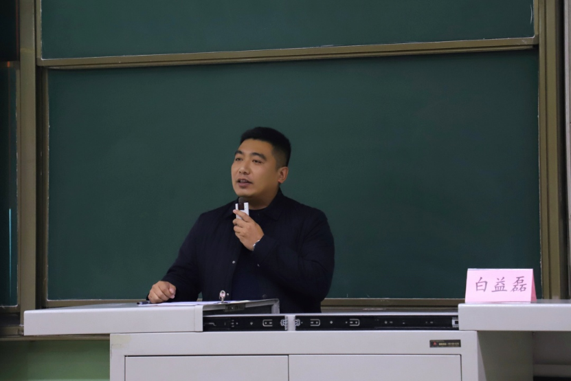 党委副书记白益磊则着重分析就业形势、并通过青年校友就业选择的案例、毕业生专项行动、选调生等内容详细解读如何进行就业选择。嘱咐同学们要有正确的就业思路,多和长辈沟通;在工作过程中,要有迎难而上的态度;并提醒同学们重视法律意识、维权意识以及诚信意识,加强自我保护。