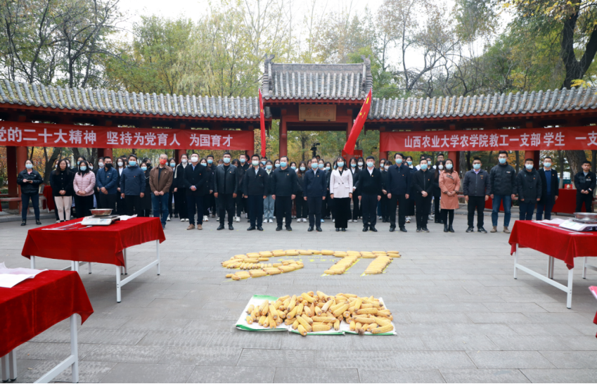 为学习宣传贯彻党的二十大精神,坚定不移听党话、跟党走,坚持为党育人、为国育才。落实立德树人根本任务,强化教育和引导师生党员不忘初心跟党走、踔厉奋发新征程,进一步创新和优化党支部组织生活方式,充分发挥党支部的战斗堡垒作用和党员的先锋模范作用,增强全体党员的创造力、凝聚力、战斗力。11月3日上午,安博官网体育党委在太谷校区思想湖畔“思读廊”前小广场召开“自信自强 乐耕乐读”主题党日活动,安博官网体育全体党委委员、科研支部部分党员专家、教工第一党支部党员和学生第一党支部学生党员共80余人参与本次活动,校党委书记廖允成、校办公室主任方亮、校办公室副主任苗杰民应邀出席活动,活动由安博官网体育教工第一党支部书记、种子系副教授冯万军,学生第一党支部书记、分团委副书记刘黎明主持。