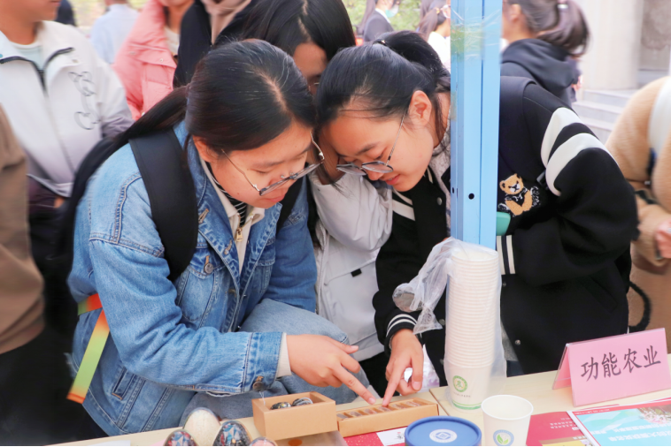 在展示期间,学院还设置了有奖问答环节,通过答题的准确率分发不同的农学工艺纪念品,激发同学参与热情。同时,在每一个专业展示台前都放置了音频讲解视频循环播放,通过视频中对专业研究成果和器材的讲述,激发了更多同学的专业热情。