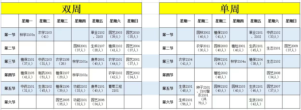 2022秋季植物生理实验课表
