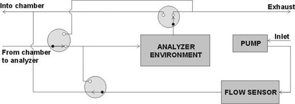 测量时,空气或者是样品气分时流经同一个固态的CO2分析器。分析器的输出信号经过放大,由模数转换器采样,然后送给微处理器。微处理器将这些读数进行平均处理,并对分析器的非线性进行纠正。