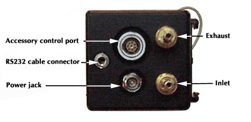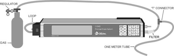 注意:CI-301AD不能向输出口提供正压气体,这是因为要使控制器保持稳定,内部必须产生稳定的气流,不用的气体就排放到箱子内。必须用分析器或外部的泵才能从出气口抽到气体。当与CI-340相连时,该分析器内部的泵可以将气体从CI-301AD的出气口抽到分析器系统。若使用其它分析器可能需要使用一个额外的泵。