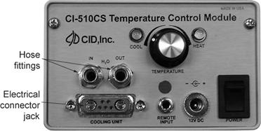 CI-510CS温度控制附件由两部分组成(参见图A-1 和A-2):控制器和温度控制板。CI-510CS可以在环境温度的基础上升高或降低25℃。