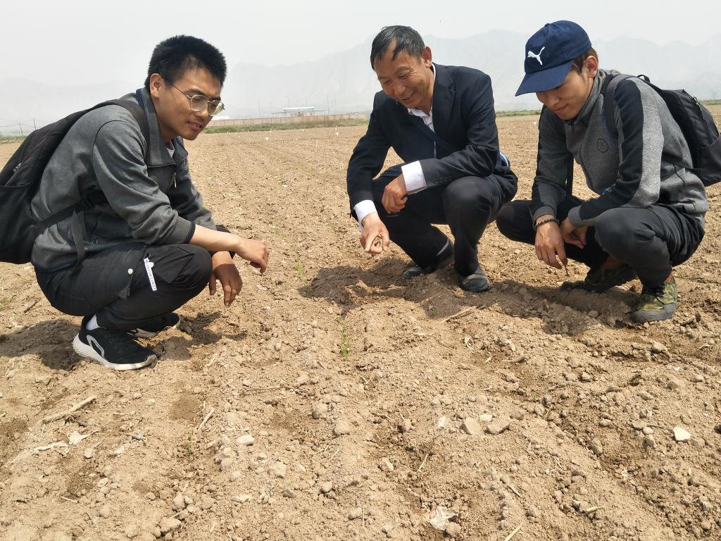2O21年5月19日,距离高粱品种比较试验播种已经过去8天,实践队员跟随崔老师再次来到定襄县季庄镇横山村。实践队员首先与种植农户一起检查了高粱品种示范田出苗情况。由于播种质量高,近期没有形成板结,高粱出苗较好。在崔老师指导下,实践队员又与农户交流了后期管理的基本要点,为以后开展管理做准备。