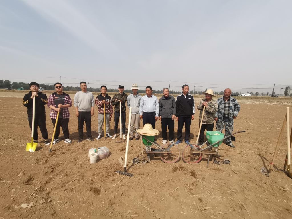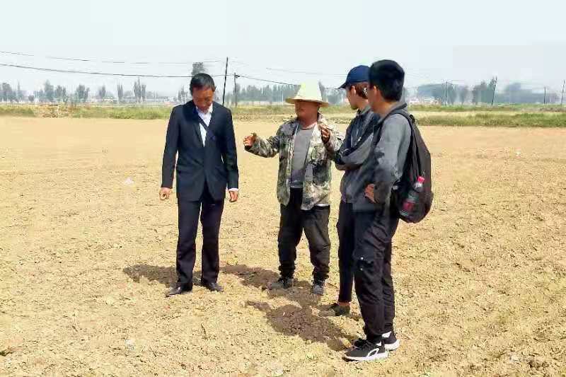 5月11日早上6点半,所有成员从山西农业大学出发,带领劳动工具和食物乘车去定襄县季庄镇横山村播种高粱,上午9点实践队员到达高粱示范地,在地头,崔老师与横山村李建忠书记确定好了100余亩高粱种植核心示范事宜,同时与高粱新品种示范田种植农户老李谈好了合作事项。7个品种种植地块为3亩地,实践队成员在农户帮忙下,划出了新品种示范田与其他高粱示范田的地界。