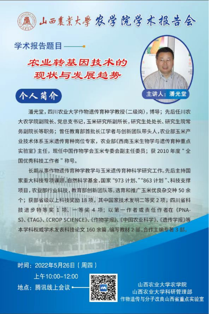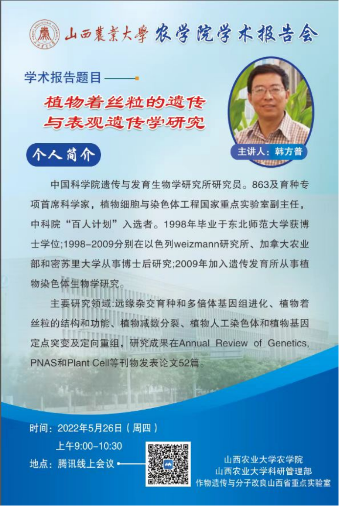 5月26日上午,经过精心组织和准备,(中国)有限公司举办了“相约云端、漫步科苑”为主题的科技活动周线上学术报告会。与以前的学术报告会不同,本次学术报告会是在坚持新冠肺炎疫情防控不放松的前提下举行的,采用了腾讯会议的形式。报告会在四个会场进行,分别由中国农业大学安博官网体育王志敏教授、中国科学院遗传与发育生物学研究所韩方普研究员、四川农业大学潘光堂教授、华南农业大学资源环境学院张承林教授主讲,报告由原向阳院长和高志强教授主持。