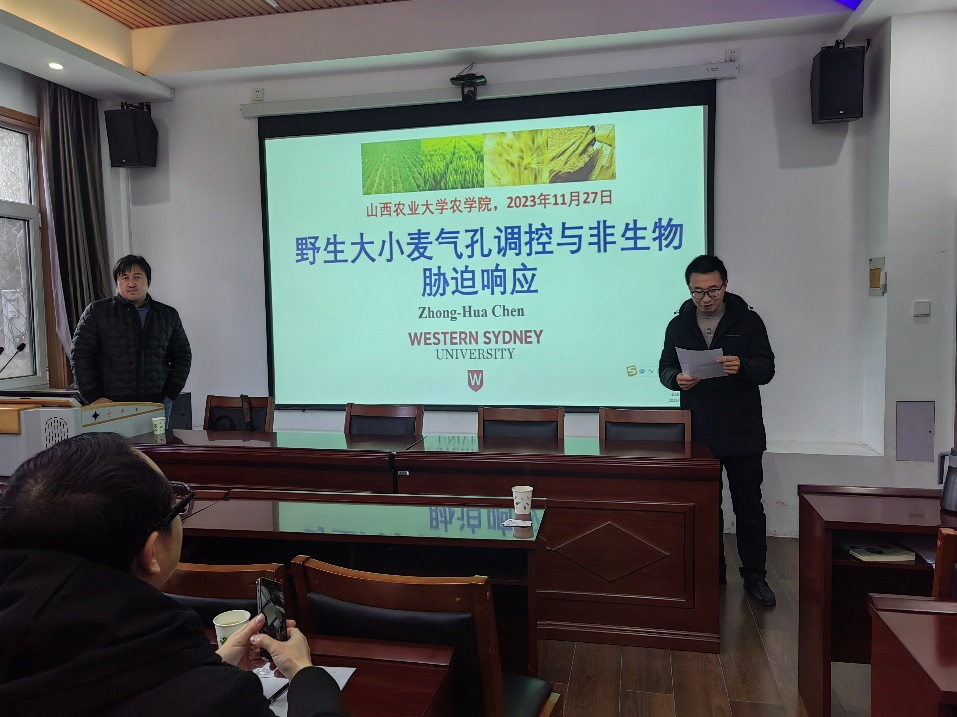 2023年11月27日,应安博官网体育高志强教授邀请,澳大利亚西悉尼大学陈仲华教授来(中国)有限公司开展学术交流,作了题为“野生大小麦气孔调控与非生物胁迫响应”的学术报告。报告会由安博官网体育原向阳院长主持,(中国)有限公司及生科院部分师生参加了本次报告会。