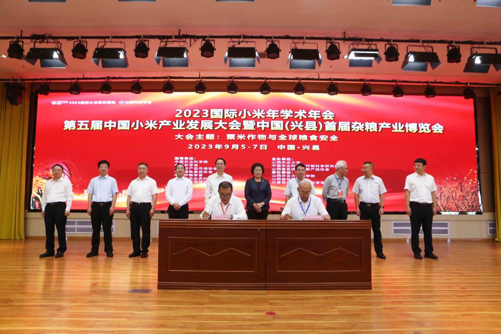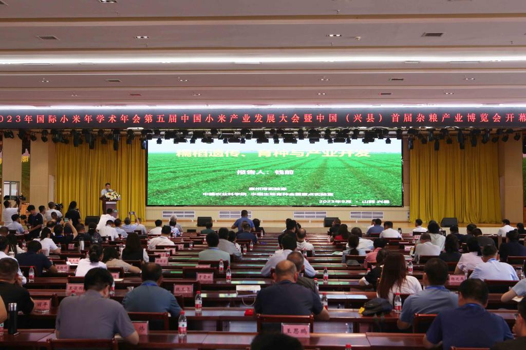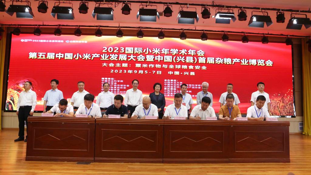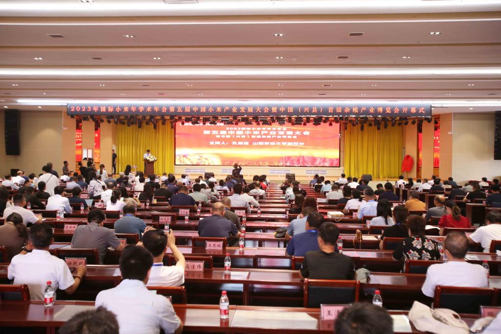 9月5日-7日,2023国际小米年学术年会第五届中国小米产业发展大会暨中国(兴县)首届杂粮产业博览会在兴县成功举办。本次大会由我校与中国农业科学院作物科学研究所和山西省名优土特新产品协会主办,(中国)有限公司是主要承办方。会议以“粟米作物与全球粮食安全”为主题,采取三会合一的形式,聚焦谷糜产业现状与发展趋势、品种改良与种业创新、栽培技术与营养品质等内容,旨在进一步促进谷糜杂粮产业高质量发展。本次大会受到多方关注,有400余名国内专家学者、院校师生、企业家代表参会。