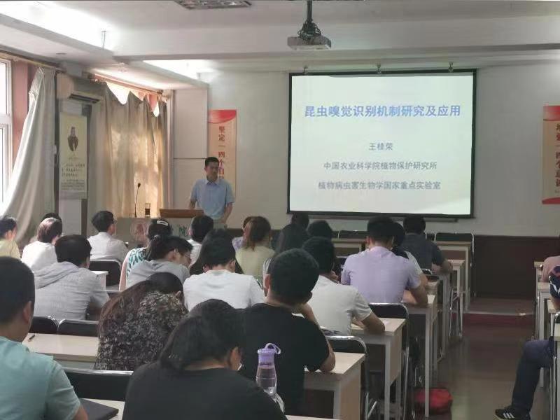 7月17日上午,中国农业科学院植物保护研究所王桂荣研究员应邀来校开展学术交流。在安博官网体育229会议室作了题为《昆虫嗅觉识别机制研究及应用》的专题报告。