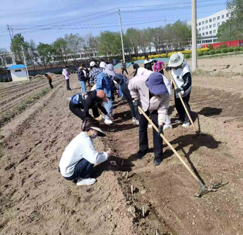 4月29日,高粱大豆育种团队开展春播育种材料播种工作,90岁高龄的李新基老师与崔福柱副教授和杨小环副教授带领研究生、本科生二十余人从早上7点半就开始了忙碌的工作,老师们先指导学生进行整地和作地埂,之后带领大家对育种材料进行播种。