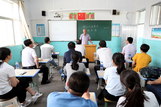 杨西灯是有60年党龄的横山村老支书,他声情并茂的讲述了横山人民学习大寨“勤劳勇敢、自强不息”的民族精神,讲述了新中国成立以来横山村由穷苦落后逐渐发展成为“华北产粮第一村”的艰苦奋斗故事,还介绍了横山村在新时代建设美丽乡村的发展状况。