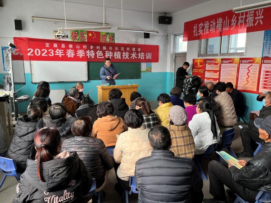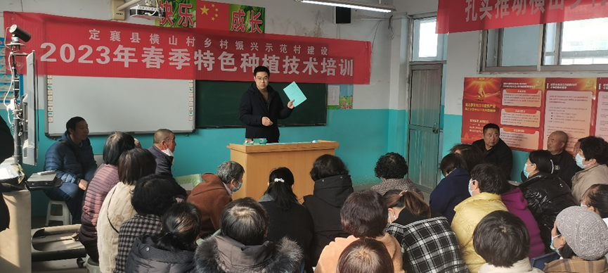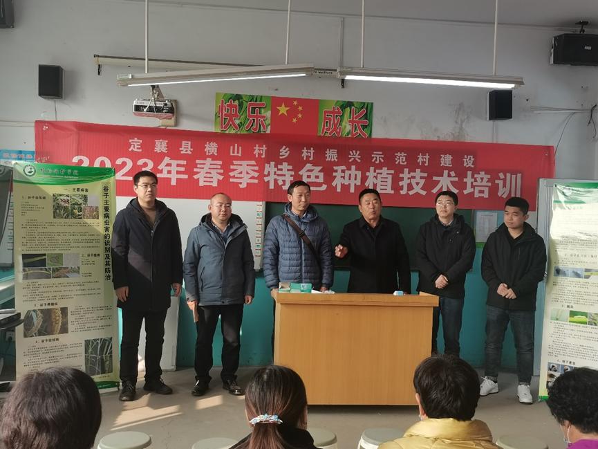 2023年2月26日,安博官网体育乡村振兴项目组召集各课题组团队成员在定襄县横山村开展了春季特色种植技术培训活动。上午10点培训活动在定襄县横山村横山学校教师中正式开始,培训对象为横山村玉米、高粱、谷子、蔬菜种植户,来参加培训的农民大约有50人左右。培训开始前由横山村党支部书记兼村委会主任李建忠致辞,李建忠分别介绍了当天参加技术培训的各课题组成员将要培训的内容,对培训工作提出了纪律要求。