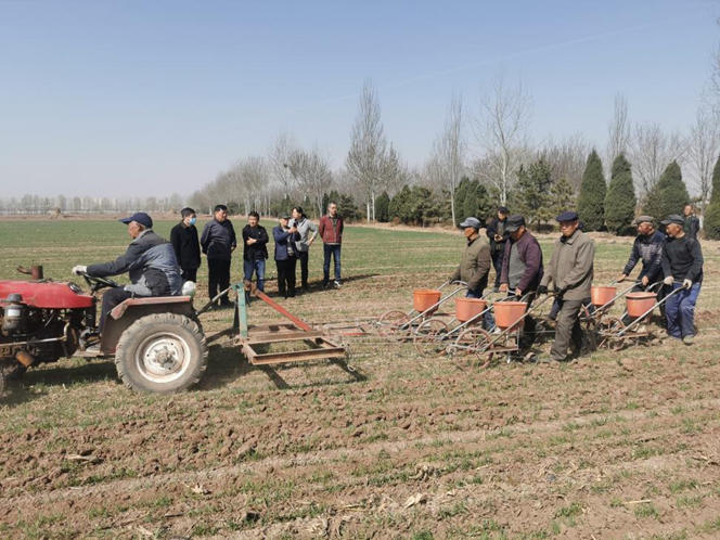 1、根据苗情每亩追施15-20 kg尿素,现场采用拖拉机做动力、人工控制方向的追肥方式,肥量均匀且精准,但极易造成土壤跑墒,要及时进行耙磨保墒。另外,对于出现追施肥料裸露的个别地块,要进行浅浇,以免造成无效追肥。