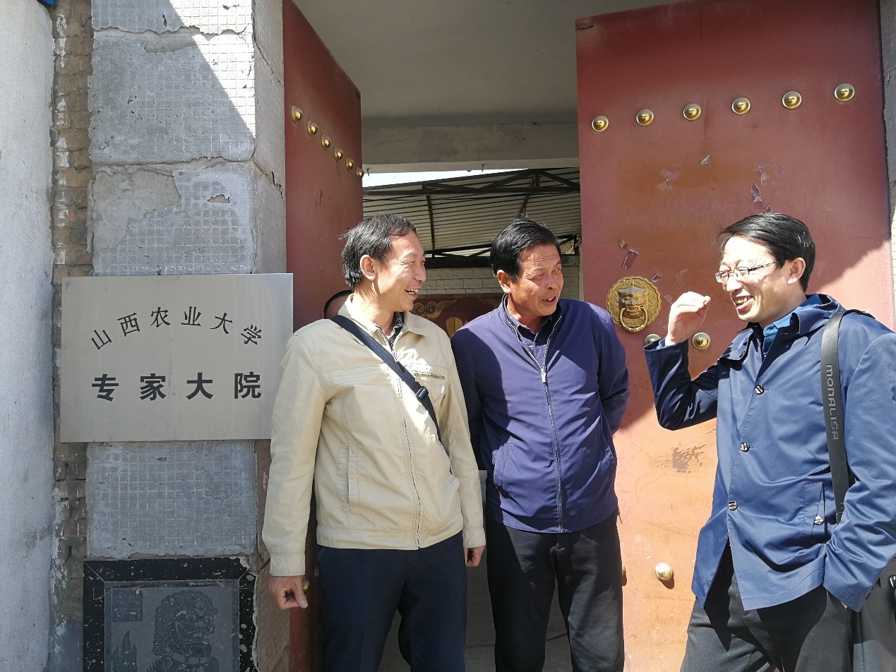 项目组成员崔福柱教授(左)冯美臣教授(右)与横山村党支部副书记杨卫平(中)