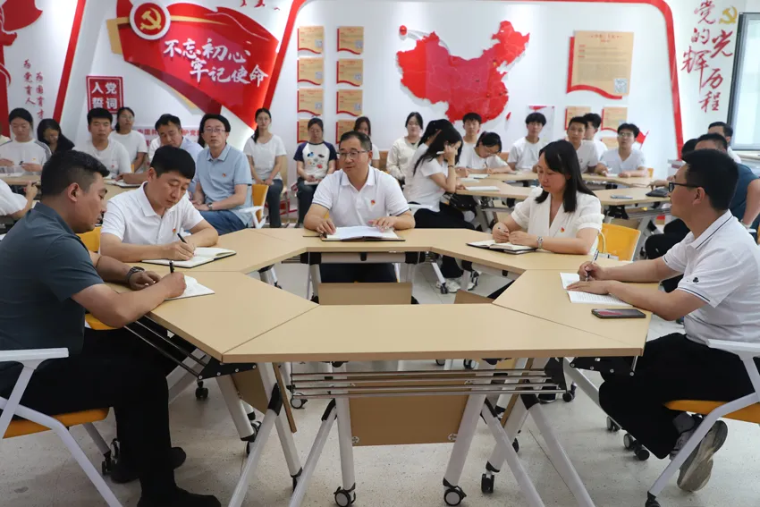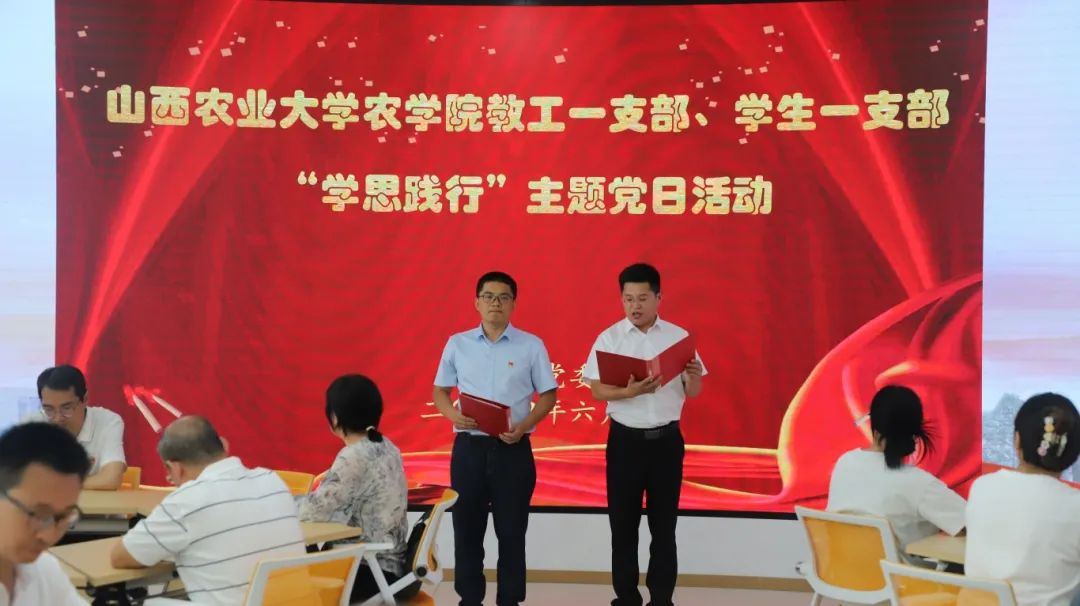 6月26日下午,校党委书记廖允成深入联系的安博官网体育教工第一党支部和学生第一党支部,在太谷校区智慧党建教室参加“学思践行”主题党日活动。安博官网体育党委委员、教工一支部党员和学生第一党支部学生党员参加,教工一支部书记薛建福、学生第一党支部书记刘黎明主持。