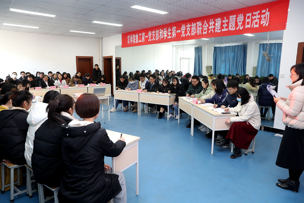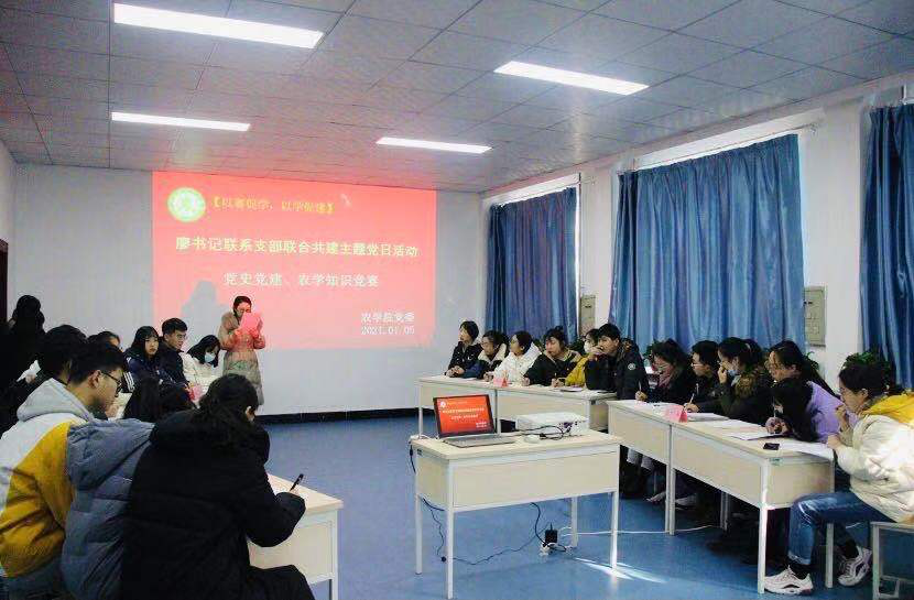 为落实立德树人根本任务,培养知农爱农人才,提升基层党支部的创造力、凝聚力、战斗力,安博官网体育教工第一党支部和学生第一党支部联合开展了本次支部共建主题党日活动,活动的主题是“迎党的生日、学‘四史’知识、担兴农使命”,分为集体学习、知识竞赛、教师点评、总结颁奖等环节。