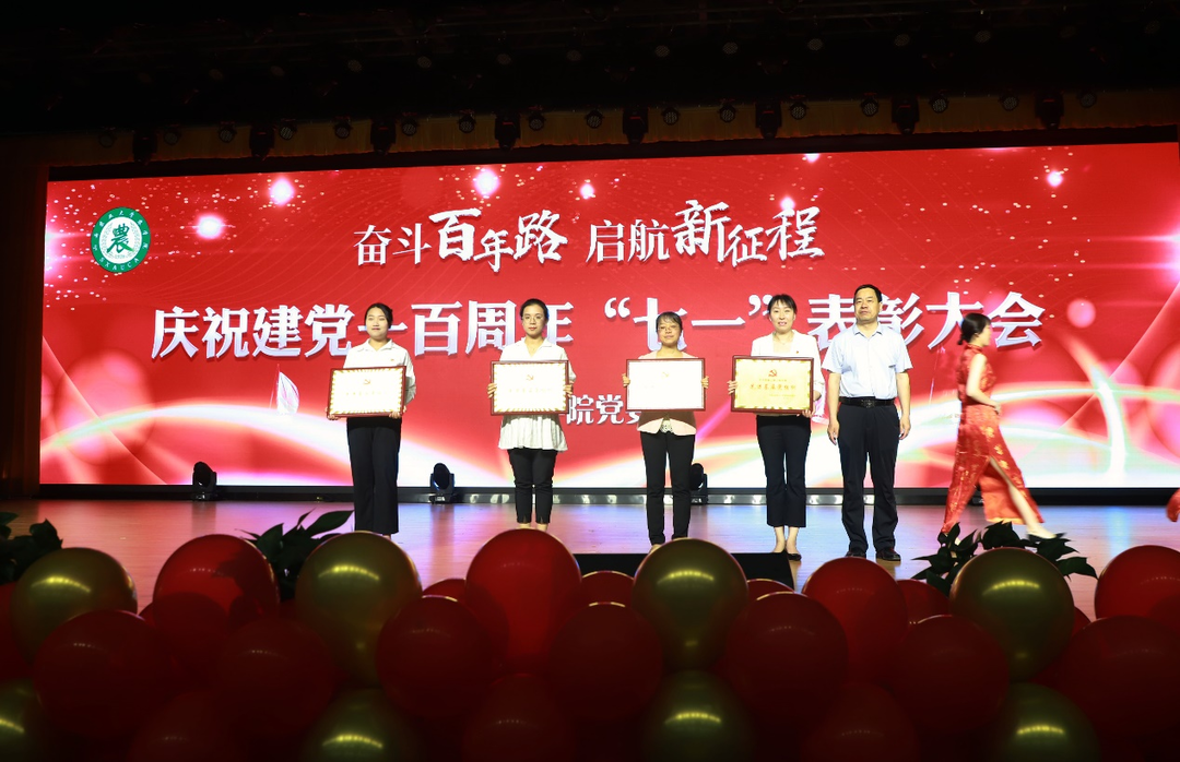为庆祝中国共产党成立100周年,扎实开展党史学习教育,树立典型、表彰先进,激励广大党员坚定信念、奋发有为, 2021年6月18日,学院于勤学楼千人报告厅隆重举行庆祝建党100周年“七一”表彰大会。校党委副书记张强、学生工作部部长原广华、校团委书记朱江、组织人事部副部长许双花、宣传统战部副部长王鹏、校团委副书记白益磊以及学院领导出席表彰大会。