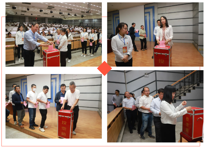 计票人再次清点到会正式党员人数。在监票人检查票箱无误后,工作人员顺利分发选票并销毁多余选票,全体正式党员秩序井然地完成了投票工作。