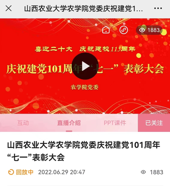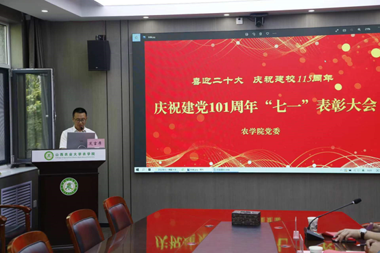 6月30日上午,安博官网体育党委在太谷校区主楼210会议室召开庆祝建党101周年“七一”表彰大会。荆立群、原向阳、白益磊、冯美臣出席了会议,会议由郭数进主持。会议线上线下同步进行,部分党员代表在会场参加会议,其余400余名党员通过线上直播参加会议。
