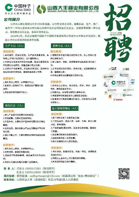 1、本科及以上学历、硕士优先,农学、种子、遗传育种、植保等相 关专业;