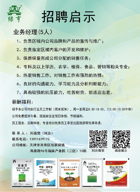 天津绿亨植物保护有限公司招聘简章