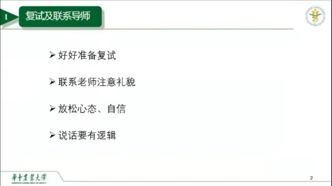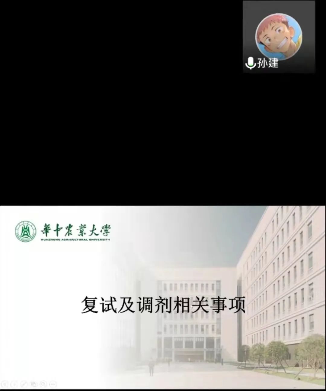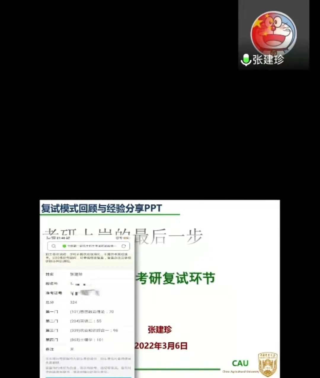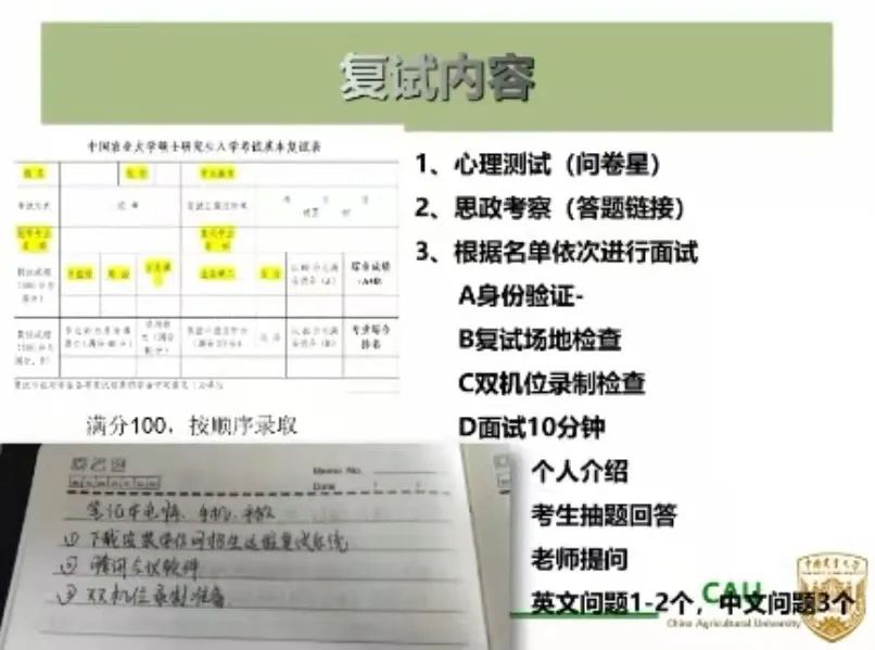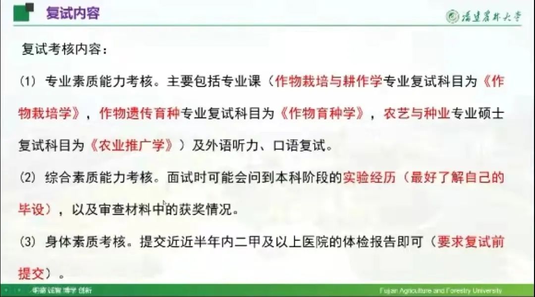 本次会议邀请到了现就读于中国农业大学的张建珍和安娇艳、西北农林科技大学的任云飞、南京农业大学的赵宇宣、华中农业大学孙建、华南农业大学张毅、东北农业大学王超、福建农林大学曾康、广西大学的李爱玲、中国农业科学院的孙凯旋、海南大学的智博洋、扬州大学的张亿等农林类高校的12位2021届学长学姐为即将复试的毕业生分享经验。
