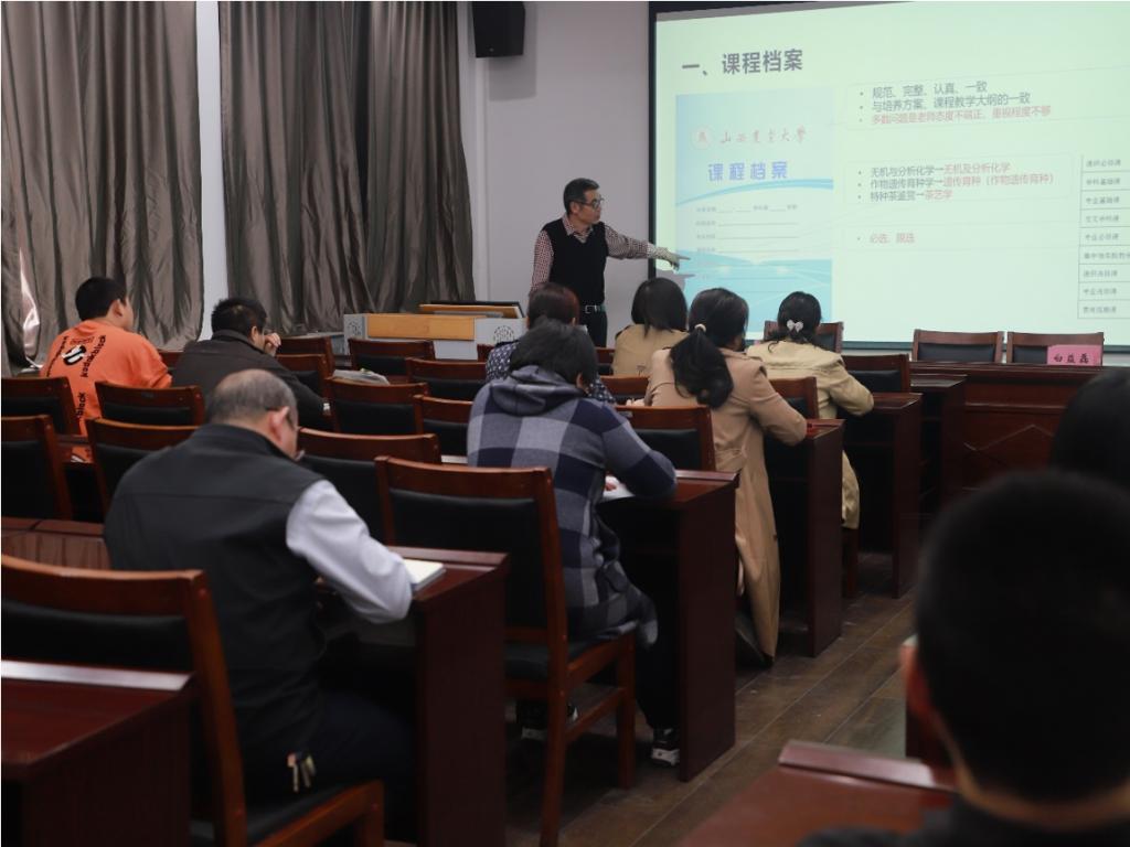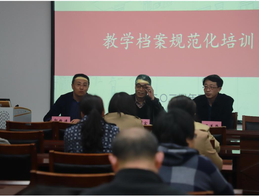 王宏富教授结合学校教学检查情况,针对学院在教学档案等方面存在的问题,深入讲解了教学档案与毕业论文相关材料在本科教育教学体系中的作用、常见的理解误区、解决办法等内容,从“学生中心、产出导向、持续改进”的角度,阐述了教学档案的内在关系与逻辑要求,并现场解答了培训教师提出的问题。