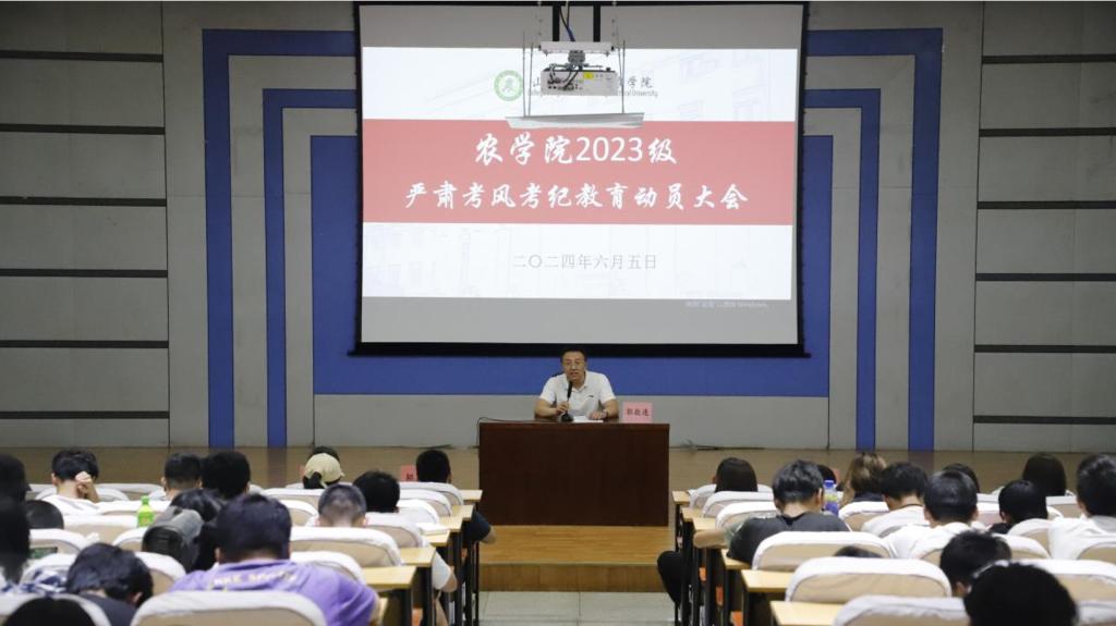 会议伊始,苏亚辉介绍了此次大会的主要目的和参会人员。随后,郭数进与监考教师和同学们一起学习了《山西农业大学课程考核管理办法(试行)》和《山西农业大学本科生考试考场纪律》中的相关内容,解读了考生守则及监考人员守则中包含的各项规定和纪律要求。郭院长强调,考风考纪是衡量一个学院学风建设的重要指标,也是培养同学们诚信品质的重要环节,他要求全体监考教师要认真履行监考职责,全体考生要树立正确的考试观念,严格遵守考试纪律,杜绝任何形式的作弊行为,共同维护考试的公平公正。
