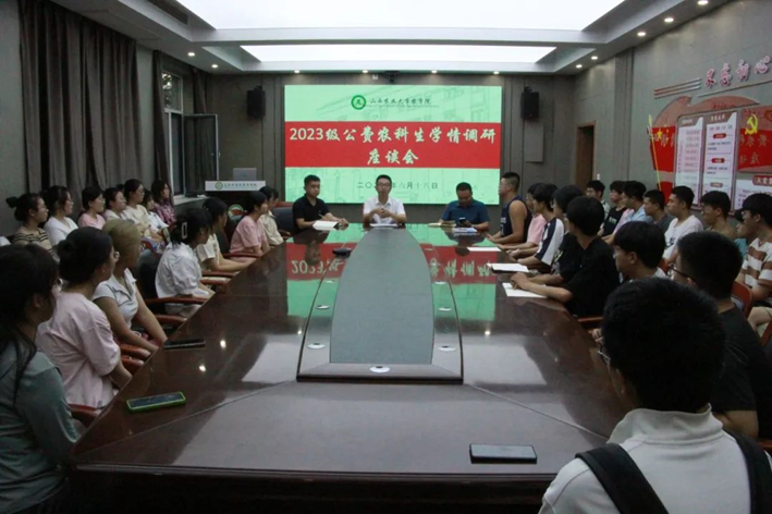 为深入了解公费农科生的学习与生活情况,搭建学院与学生沟通交流的平台,6月18日下午,(中国)有限公司于主楼210召开了2023级公费农科生学情调研座谈会。安博官网体育院长原向阳、副院长郭数进和2023级学生辅导员苏亚辉出席,2023级全体公费农科生参加了此次会议。