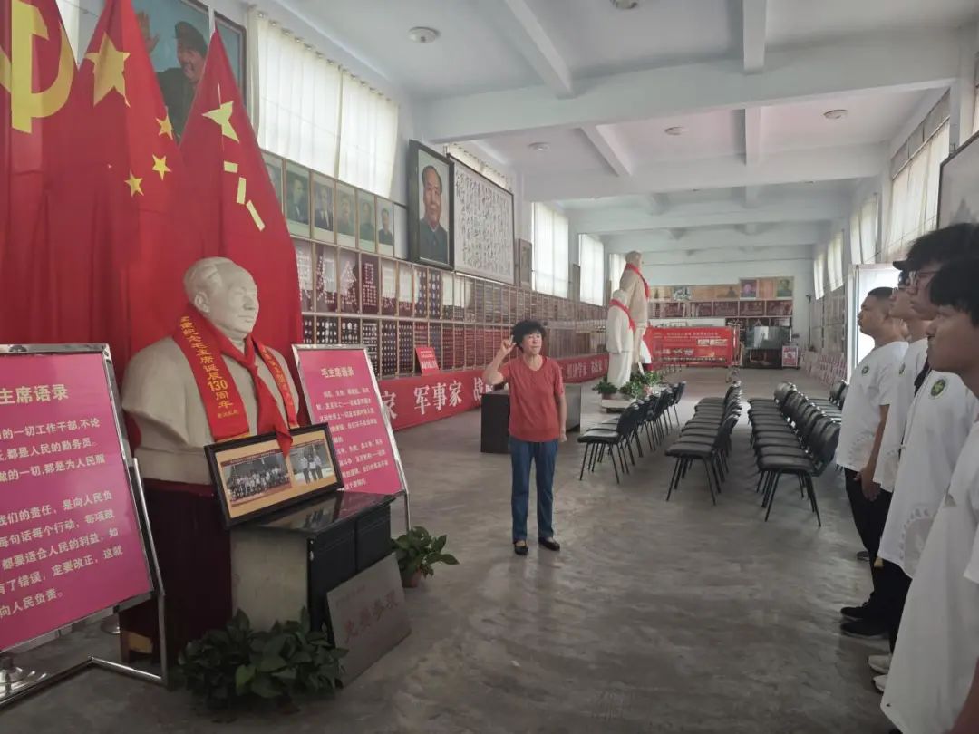 进入馆内,在馆长霍秀玲的讲解下,实践队员们深入了解了毛泽东同志的革命事迹。纪念馆中陈列出革命不同时期与毛主席有关的文物,展厅之中还有多座雕塑与壁画,分别记录了中共一大的红船启航、秋收起义等,把大家带回了过去那个波澜壮阔、勇于探索的难忘岁月,毛泽东同志在时代的浪潮中奋勇前行,他的光辉事迹照亮了我们前行的道路。建馆的初衷是全心全意宣传一代伟人毛泽东,他们为纪念品展馆投入了毕生的精力,致力于将革命精神发扬光大,它成为保存历史记忆、传承优秀文化的重要载体。