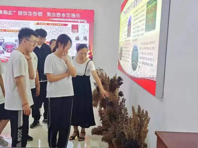 首先,高粱所负责人带领实践队员们参观高粱所,了解高粱的酿酒、酿醋的传统工艺流程,参观高粱所高粱育种、食品加工、生物技术等实验室,品尝高粱深加工产品黄酒和醋等,随后参观了陈列室,介绍研究所发展历程和取得的科技成果等。