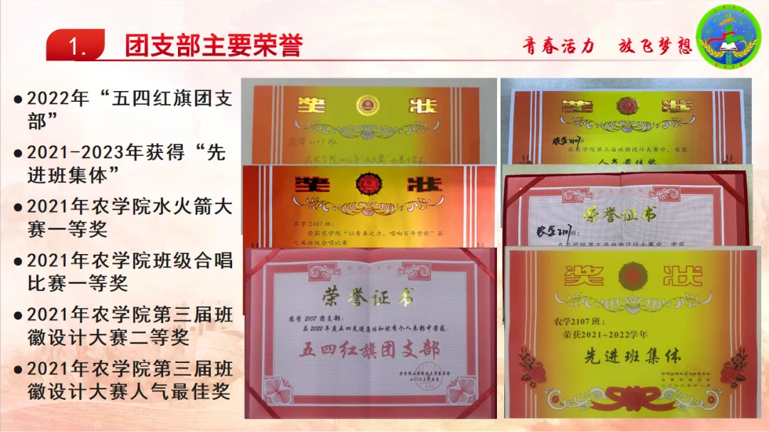 此次评选活动中,农学2107团支部精心准备了版面、视频、PPT与文字材料。在评比现场,农学2107班以PPT配合解说的形式对“支部介绍、支部建设、品牌特色、主要荣誉”这四个方面做出详细介绍,并对团支部未来的发展做出规划。有条不紊的解说与丰富多彩的内容收获现场的纷纷点赞和一致好评。
