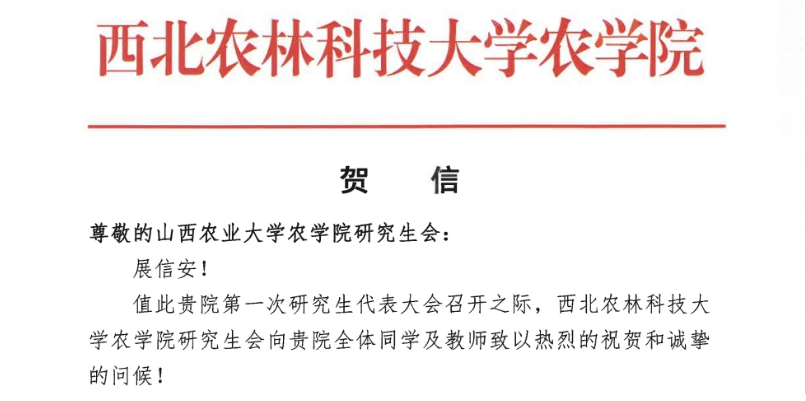 本次大会收到西北农林科技大学安博官网体育研究生会、山西农业大学园艺学院研究生分会向(中国)有限公司发来贺信。